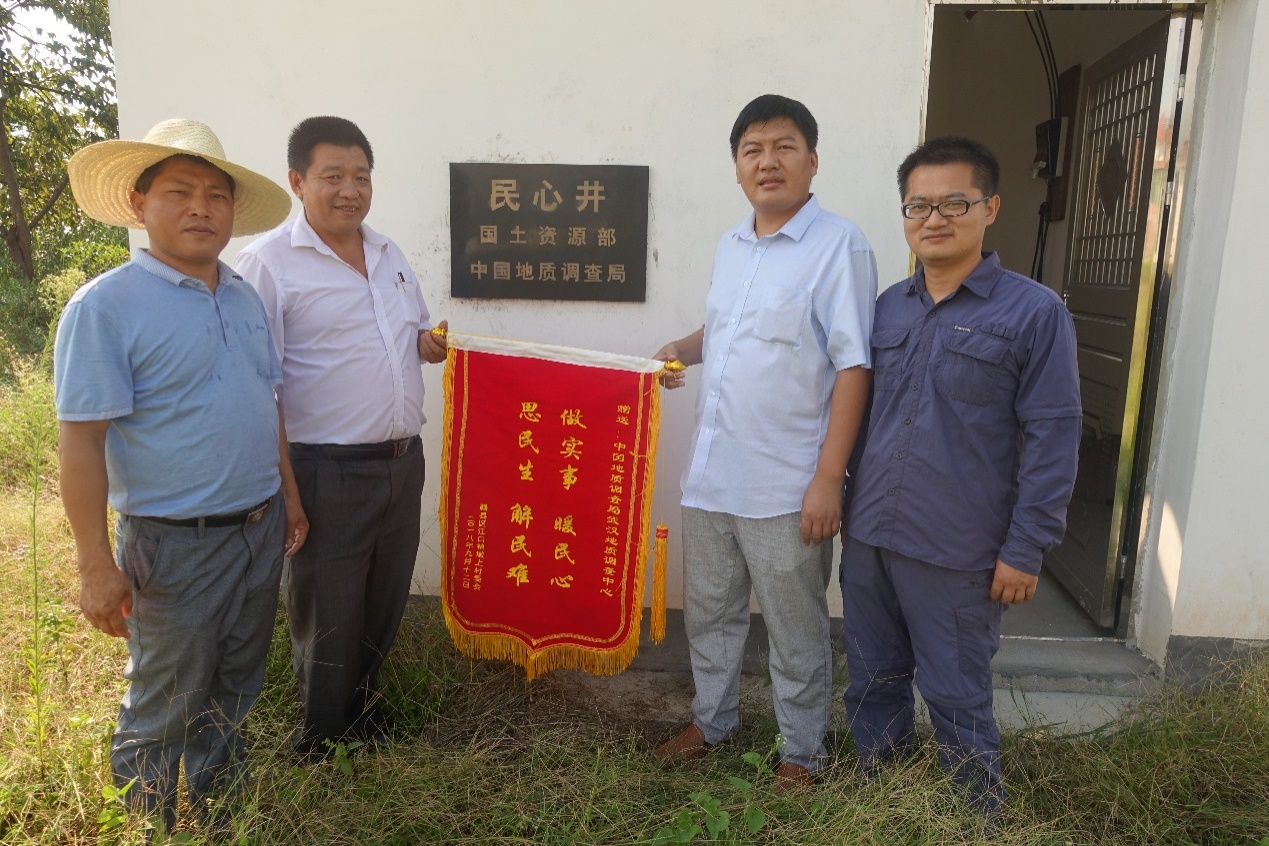 9月19日,江西省贛州市贛縣區(qū)江口鎮(zhèn)墩上村村委會將一面寫有“做實事,暖民心;思民生,解民難”的錦旗,贈送給自然資源部中國地質(zhì)調(diào)查局武漢地質(zhì)調(diào)查中心項目組負(fù)責(zé)人,感謝武漢地調(diào)中心組織實施的“墩上飲水示范井”,解決了該村45戶260余人長期缺乏干凈衛(wèi)生飲用水的困難。