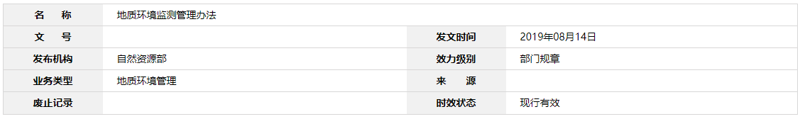 自然資源部負(fù)責(zé)制定國家和行業(yè)有關(guān)地質(zhì)環(huán)境監(jiān)測技術(shù)規(guī)范。