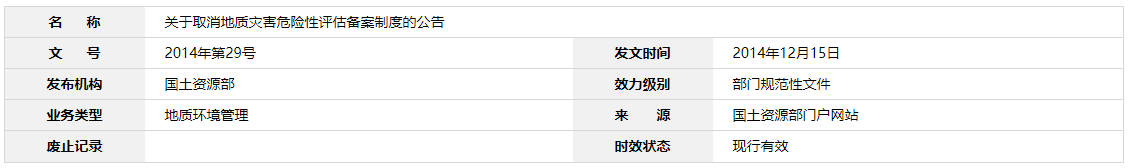 關于取消地質(zhì)災害危險性評估備案制度的公告