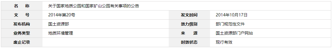 關(guān)于國家地質(zhì)公園和國家礦山公園有關(guān)事項的公告