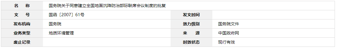國務院關于同意建立全國地面沉降防治部際聯(lián)席會議制度的批復