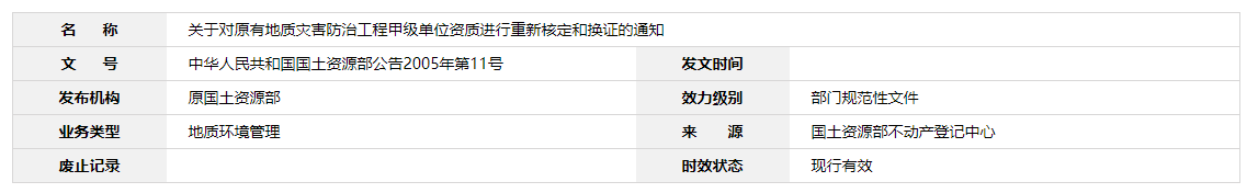 關(guān)于對(duì)原有地質(zhì)災(zāi)害防治工程甲級(jí)單位資質(zhì)