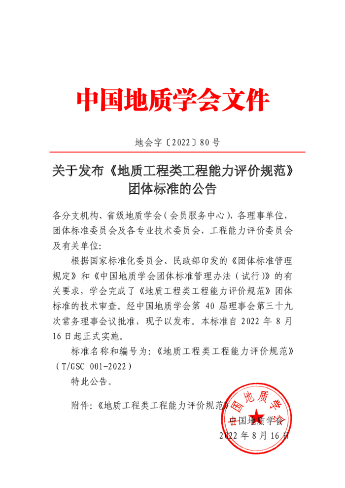 2022年8月16日,中國(guó)地質(zhì)學(xué)會(huì)發(fā)布了《地質(zhì)工程類(lèi)工程能力評(píng)價(jià)規(guī)范》(T/GSC 001–2022)團(tuán)體標(biāo)準(zhǔn),其中,教育經(jīng)歷明確要求,申請(qǐng)人應(yīng)具備中華人民共和國(guó)教育部承認(rèn)的地質(zhì)類(lèi)或相關(guān)專(zhuān)業(yè)大學(xué)本科及以上學(xué)歷(學(xué)位),或取得由《華盛頓協(xié)議》成員組織認(rèn)證的地質(zhì)類(lèi)或相關(guān)專(zhuān)業(yè)學(xué)位,或者中國(guó)地質(zhì)學(xué)會(huì)認(rèn)可的同等其他教育經(jīng)歷。 同時(shí),專(zhuān)業(yè)工作經(jīng)歷要求還明確了取得中國(guó)工程教育地質(zhì)類(lèi)專(zhuān)業(yè)認(rèn)證相關(guān)專(zhuān)業(yè)學(xué)歷(學(xué)位)的專(zhuān)業(yè)工程會(huì)員申請(qǐng)人,可減免2年的相關(guān)專(zhuān)業(yè)工作經(jīng)歷和1年重要工程工作經(jīng)歷;資深工程會(huì)員申請(qǐng)人,可減免3年的相關(guān)專(zhuān)業(yè)工作經(jīng)歷和2年重要工程工作經(jīng)歷。見(jiàn)習(xí)工程會(huì)員申請(qǐng)人的素質(zhì)能力要求應(yīng)符合中國(guó)工程教育專(zhuān)業(yè)認(rèn)證協(xié)會(huì)發(fā)布的《工程教育認(rèn)證標(biāo)準(zhǔn)》中的畢業(yè)要求。 2021年,中國(guó)工程師聯(lián)合體正式發(fā)布了《工程能力評(píng)價(jià)通用規(guī)范》(T/CAS 326-2021),其中明確提到“見(jiàn)習(xí)工程會(huì)員申請(qǐng)人的素質(zhì)能力要求,應(yīng)符合認(rèn)證協(xié)會(huì)發(fā)布的《工程教育認(rèn)證標(biāo)準(zhǔn)》中的畢業(yè)要求 ”;“獲授權(quán)學(xué)會(huì)應(yīng)根據(jù)各工程技術(shù)領(lǐng)域特點(diǎn),對(duì)取得中國(guó)工程教育專(zhuān)業(yè)認(rèn)證協(xié)會(huì)或其他相關(guān)機(jī)構(gòu)(如華盛頓協(xié)議)成員組織認(rèn)證的工程類(lèi)或相關(guān)專(zhuān)業(yè)學(xué)位的申請(qǐng)人,適當(dāng)減少1-2年的相關(guān)專(zhuān)業(yè)工作經(jīng)歷”。