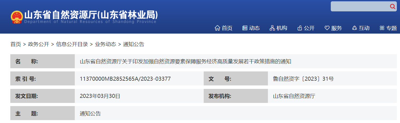 文章來源于:山東省自然資源廳,原文鏈接:山東省自然資源廳關(guān)于印發(fā)加強自然資源要素保障服務(wù)經(jīng)濟高質(zhì)量發(fā)展若干政策措施的通知