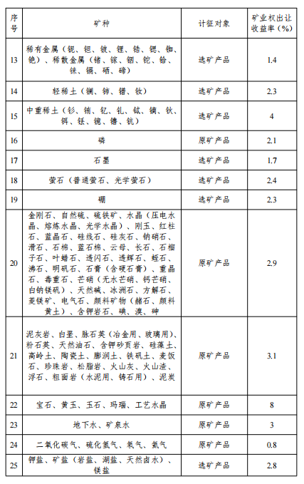 按礦業(yè)權(quán)出讓收益率形式征收礦業(yè)權(quán)出讓收益的礦種目錄