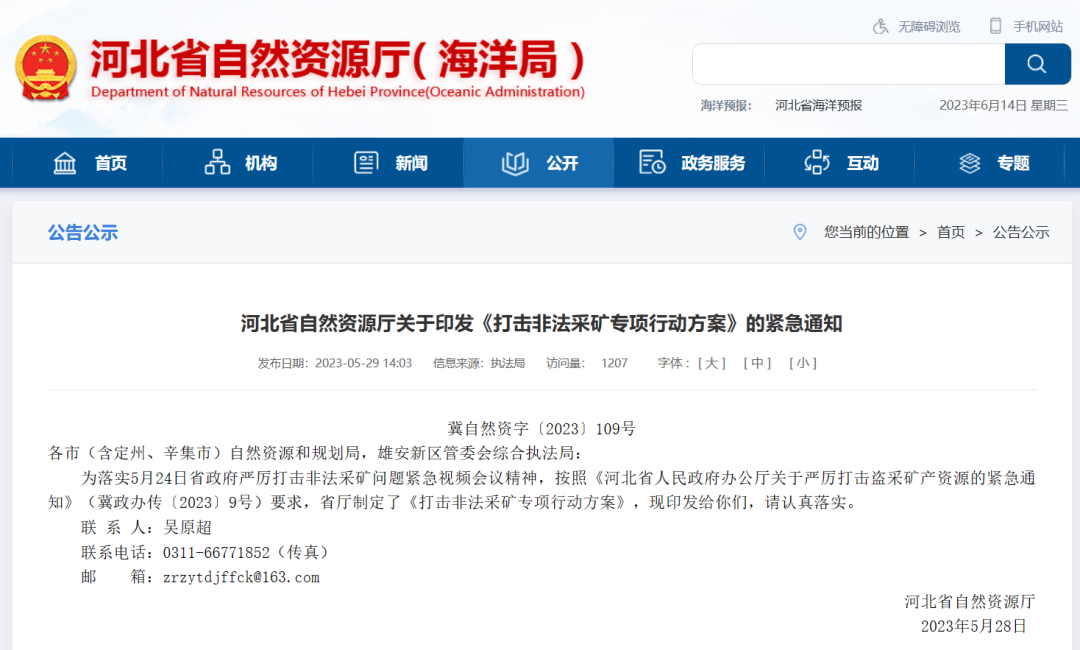 河北省自然資源廳關(guān)于印發(fā)《打擊非法采礦專項行動方案》的緊急通知