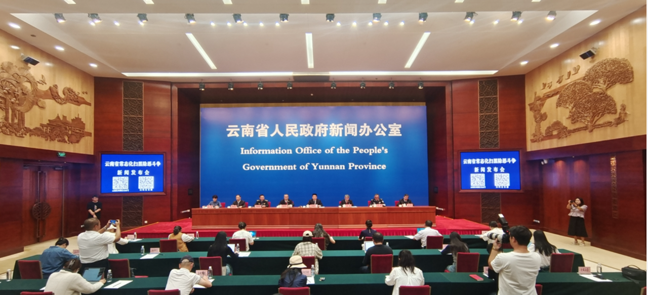 云南省人民政府新聞辦公室于2023年9月26日上午在海埂會堂玉舉行云南省常態(tài)化掃黑除惡斗爭新聞發(fā)布會,邀請省委政法委、省高級人民法院、省人民檢察院、省公安廳、省市場監(jiān)管局、省自然資源廳、省文化和旅游廳有關(guān)負責(zé)同志向社會公開介紹相關(guān)情況并回答記者提問。