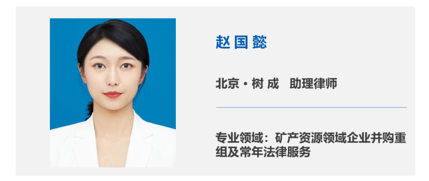趙國懿本科畢業(yè)于中南財經(jīng)政法大學(xué)法學(xué)專業(yè),研究生畢業(yè)于英國布里斯托大學(xué)國際商法專業(yè)。主要從事領(lǐng)域為礦產(chǎn)資源領(lǐng)域企業(yè)并購重組及常年法律服務(wù),入職以來已協(xié)助為華鈺礦業(yè)、寶山礦業(yè)、金茂集團(tuán)、新疆中硅、九有股份等企業(yè)提供常年和專項法律服務(wù)。
