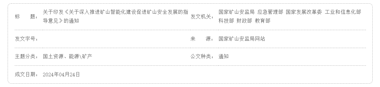 關(guān)于深入推進(jìn)礦山智能化建設(shè)促進(jìn)礦山安全發(fā)展的指導(dǎo)意見(jiàn)