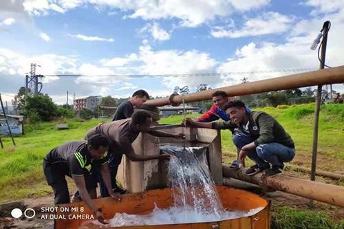 亞的斯亞貝巴水局6眼井項目自2018年12月施工以來,二勘院鉆探實業(yè)一部共投入施工、技術人員11名,鉆機4臺。施工期間,全體人員齊心協(xié)力,積極克服因征地問題引起的百姓阻工以及鉆進過程中地層漏失、坍塌等諸多困難,嚴格按照技術規(guī)范,嚴把工程質量關,提前兩個月完工。