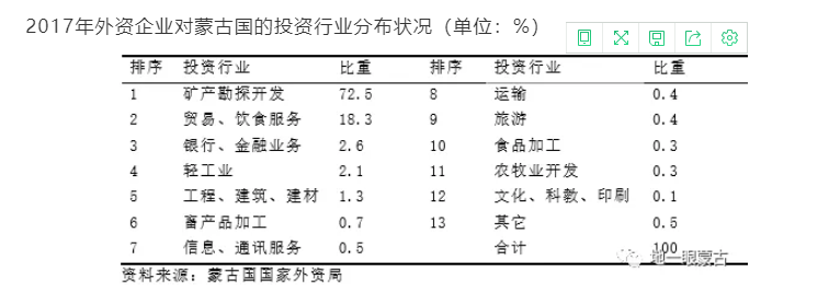 蒙古國外資企業(yè)的投資產(chǎn)業(yè)和地區(qū)分布