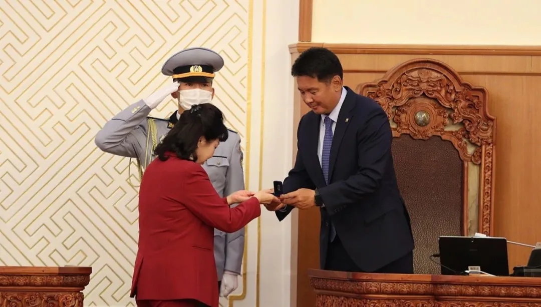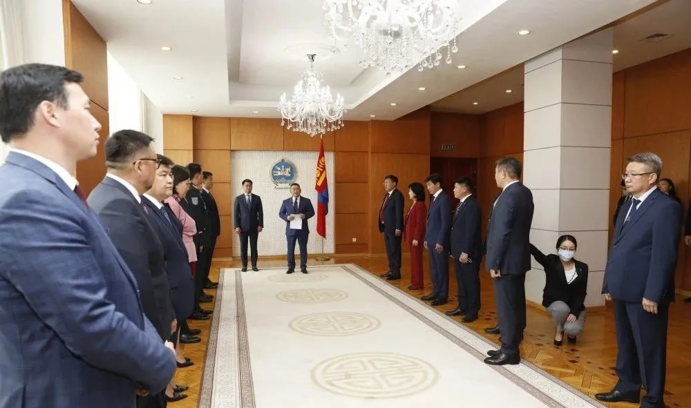 由呼日勒蘇赫領(lǐng)導(dǎo)的蒙古國新政府成員8日向國家大呼拉爾(議會(huì))宣誓就職。