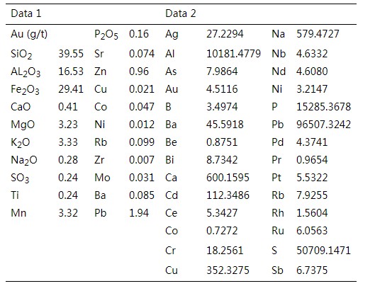 例如,從表1所列化驗數(shù)據(jù)大致推測樣品采集區(qū)域可能出露的巖石類型、賦存的經(jīng)濟礦物、成礦因素有哪些和大致的成礦類型等信息。