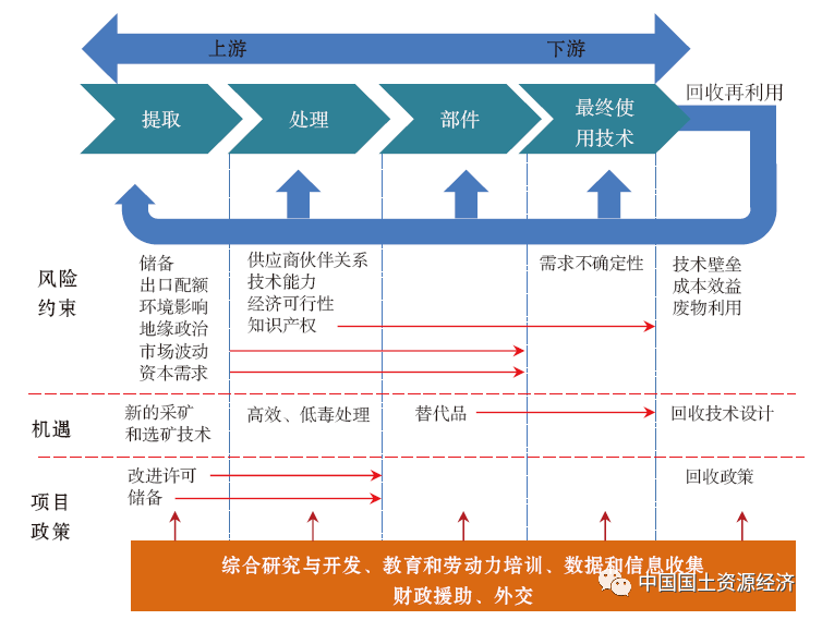 立足國內(nèi),構(gòu)建科學(xué)、可用的地質(zhì)數(shù)據(jù)集,發(fā)現(xiàn)潛在的資源區(qū),確定關(guān)鍵礦產(chǎn)資源潛力的優(yōu)先區(qū),提高關(guān)鍵礦產(chǎn)保障能力。在確保生態(tài)安全前提下,縮減審批流程,加快關(guān)鍵礦產(chǎn)的開發(fā)、利用。加強(qiáng)關(guān)鍵礦產(chǎn)預(yù)警分析,提高研判的精準(zhǔn)性、及時性,為關(guān)鍵礦產(chǎn)儲備提供決策支撐。通過技術(shù)創(chuàng)新、產(chǎn)業(yè)升級、價值提升,做精中游生產(chǎn)鏈,拓展下游價值鏈。