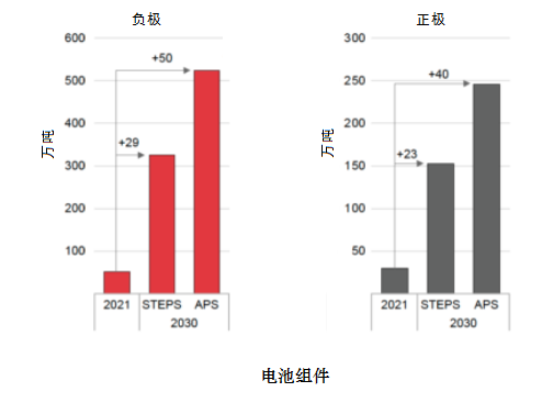 預(yù)測(cè)的2020年代末礦產(chǎn)供應(yīng)量與IEA關(guān)于世界能源模型“既定政策情景”(STEPS,Stated Policies Scenario)下的動(dòng)力電池需求量一致。但是一些礦產(chǎn)比如鋰的供應(yīng)量到2030年需要增長(zhǎng)1/3才能滿足同一能源模型中“公開(kāi)承諾情景”(APS,Announced Pledges Scenarion)下動(dòng)力電池的需求。