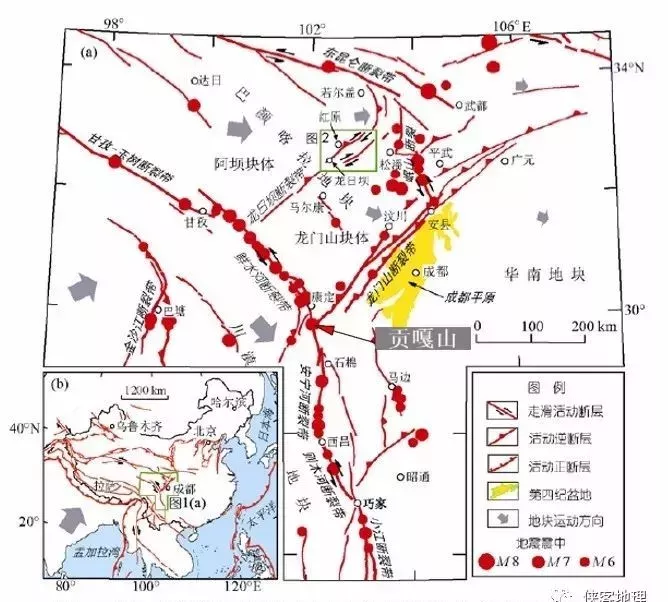 這三條粗線條就是鮮水河斷裂帶、龍門山斷裂帶和安寧河斷裂帶,是三大塊體的分界線。因此這三條斷裂帶是四川省最活躍、最強烈,也是最危險的斷裂帶。