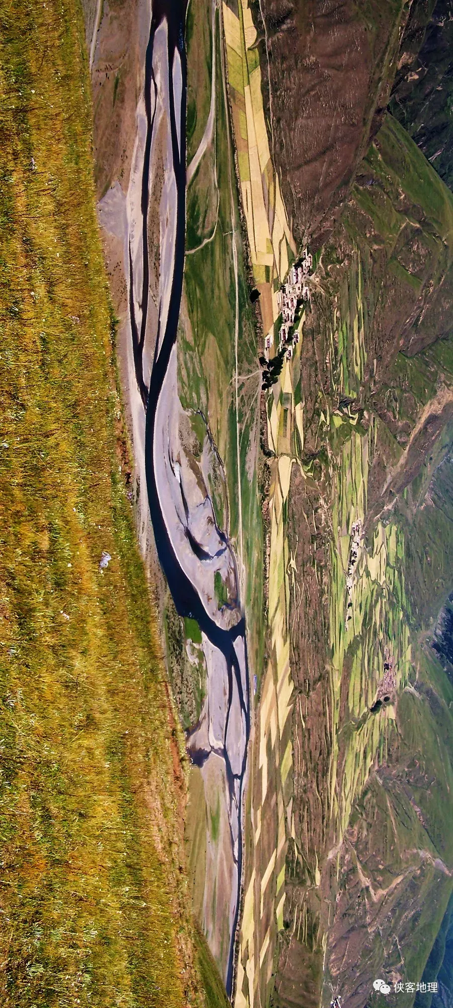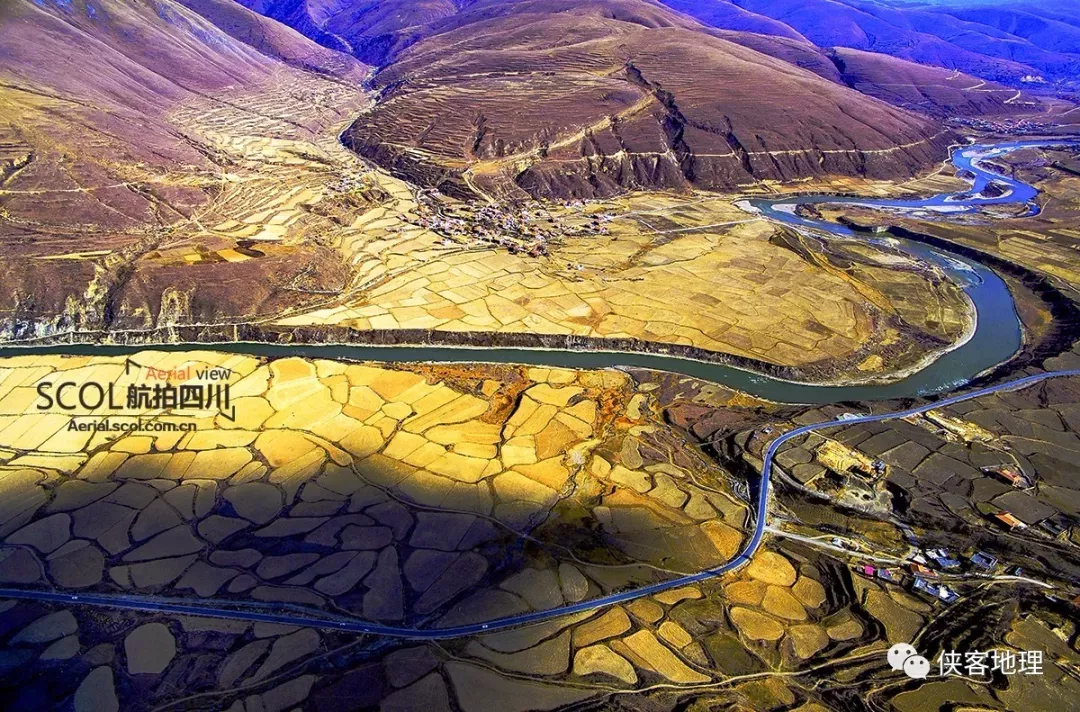 沿河谷分布的平壩像一個個珍珠,被鮮水河串在一起(攝影/康巴阿哥,源于航拍四川)