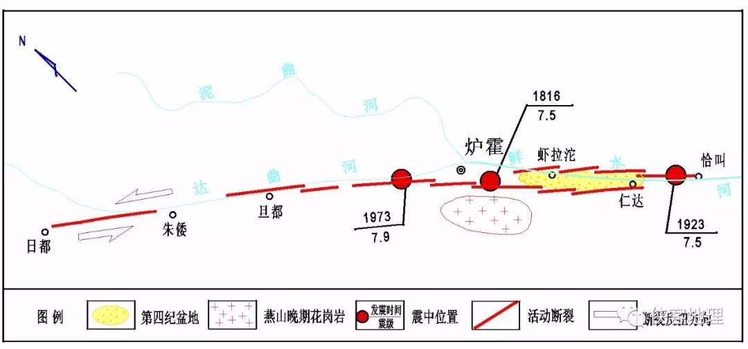 鮮水河斷裂帶及歷次地震分布圖