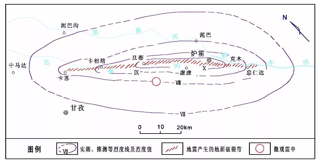 1973年爐霍7.9級地震等烈度和地裂縫圖