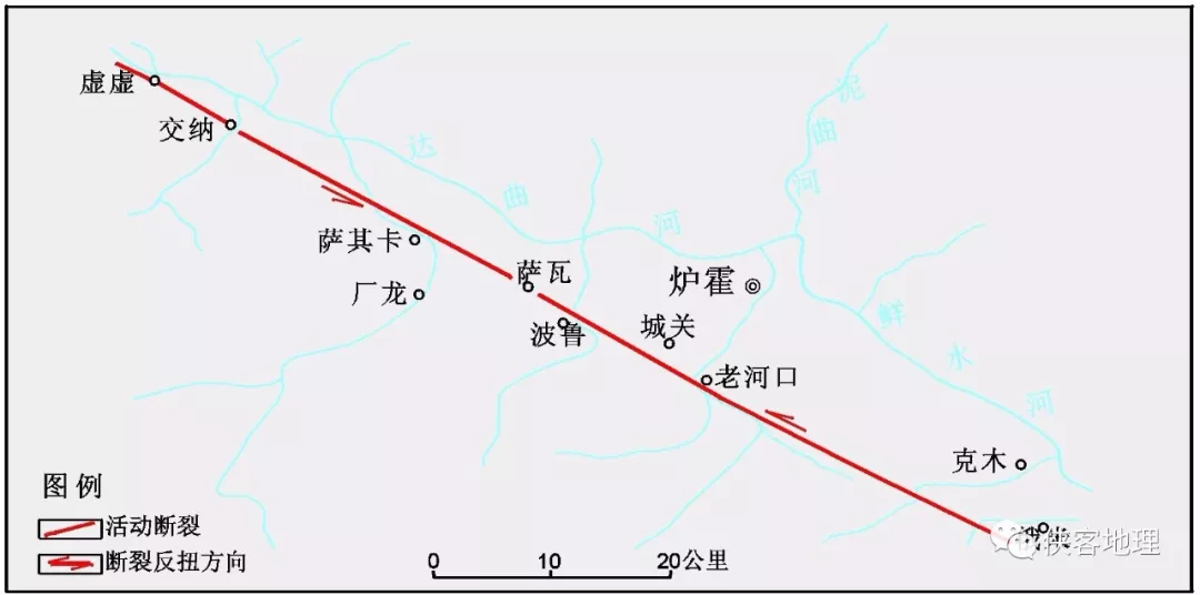 爐霍斷裂通過處水系反扭特征示意圖