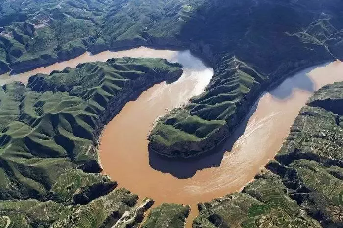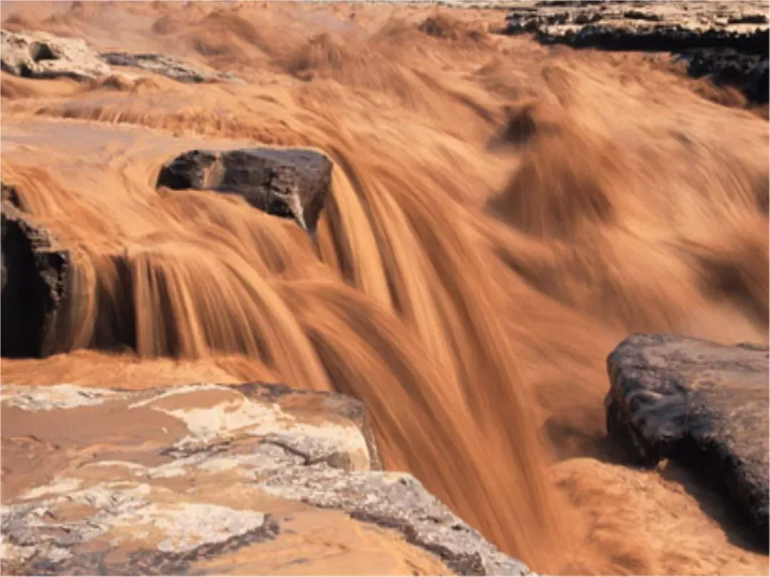 由定西再往上 100 千米就是蘭州,黃河流至此城,還是清水河。全河年均輸沙量 16 億噸中有9億噸,來自蘭州至壺口這一區(qū)間,還有 5.5 億噸來 自禹門至三門峽河段。皆因黃土臺塬水土嚴重流失, 造成黃河下游河道淤積,連年改道,光是近 2 000 年間就決堤 1 500 次以上。