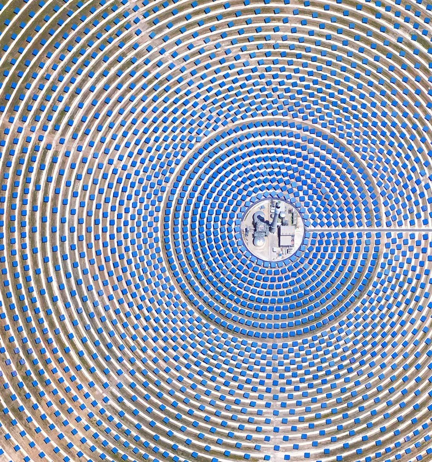 這個(gè)位于塞維利亞的太陽(yáng)能聚光器,使用2650個(gè)定日鏡來(lái)收集和聚焦太陽(yáng)的熱能。