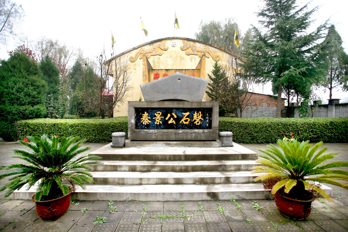 ▲秦景公紀(jì)念館前的石磬復(fù)制品