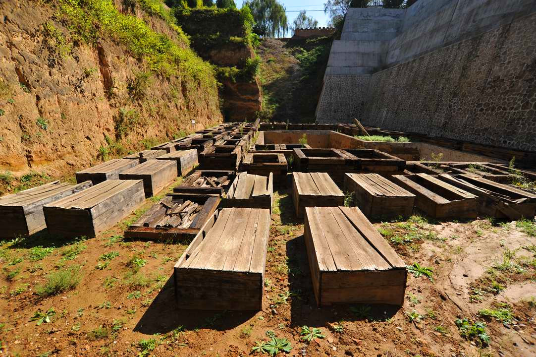 然而令人意想不到的是,秦景公墓室的考古工作,幾乎始終籠罩在恐怖的氛圍之中,人們在墓葬二層基臺(tái)發(fā)現(xiàn)了大量散落的骸骨,無棺無槨。這些遺骨大多都是身首異處、殘缺不全的,一些尸骨的下頜更是劇烈張開,呈現(xiàn)出一種無比痛苦的表情。繼續(xù)往下開掘,考古人員又陸續(xù)發(fā)現(xiàn)166具棺木,打開之后,眾人發(fā)現(xiàn)里面的尸骸竟全部蜷縮下肢?吹竭@一極度詭異恐怖的場景,一些剛參加工作的年輕隊(duì)員都有些害怕,還是有經(jīng)驗(yàn)的老專家指出,這是曾經(jīng)盛行于秦國的“屈肢葬”。 所謂“屈肢葬”,就是在人剛死不久,趁著遺體尚未僵硬,就把死者下肢用布條卷曲捆扎再放入棺中。