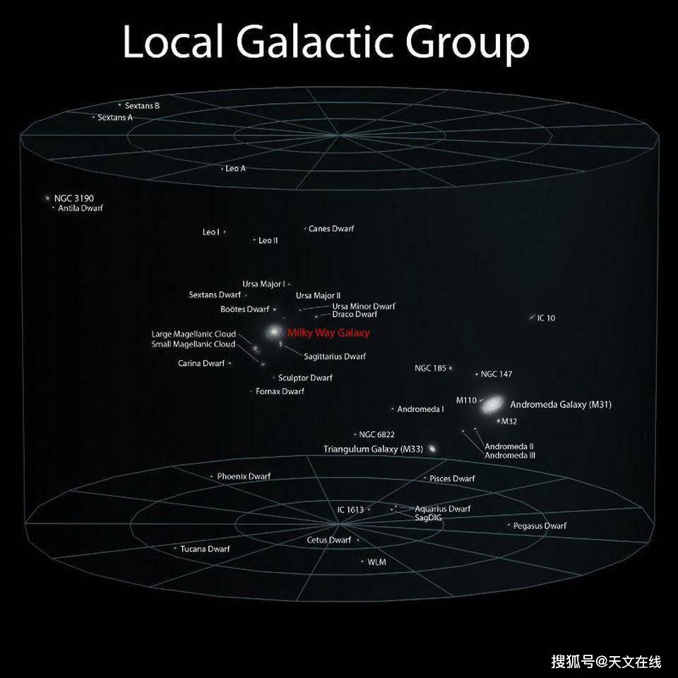 圖解:我們的局部星系群以仙女座和銀河為主,但不可否認的是仙女座最大,銀河位居第二,三角座第三,麥哲倫星云第四。 雖然僅16萬光年之隔,距離上它是十大星系中離我們最近的星系了。圖源:ANDREW Z. COLVIN