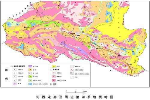 關于河西走廊的地質(zhì)成因有兩種解釋:槽臺學說認為,河西走廊屬祁連褶皺系走廊過渡帶;板塊構造學說認為,屬塔里木-中朝板塊陸緣活動帶。河西走廊四周受區(qū)域性深大斷裂的限制,北部為寬灘山-合黎山-龍首山斷裂帶,南為祁連山北緣斷裂帶,西為阿爾金走滑斷裂帶,東為鄂爾多斯西緣斷裂帶。從地貌形態(tài)上看,河西走廊夾峙在祁連山、阿爾金山與馬鬃山、合黎山、龍首山等山脈之間,東起烏鞘嶺,西至甘新交界的星星峽,呈東西走向展布,長約1000公里、寬約10公里至100余公里的狹長地帶。
