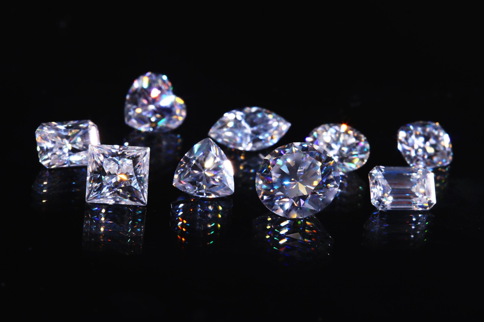 雖然外貌足以以假亂真,但鑒別莫桑石的方法也不少。最簡(jiǎn)單也最直觀的就是在10倍放大鏡下觀察,莫桑石有刻面棱重影現(xiàn)象和強(qiáng)火彩特征。除此之外,它的相對(duì)密度值較低,雙折射率和色散較高,內(nèi)部還可能存在長(zhǎng)針狀包裹體,這些也是莫桑石與天然鉆石的不同之處。