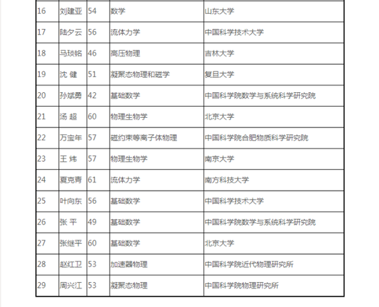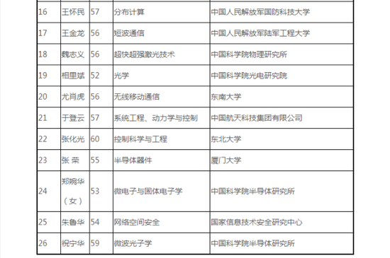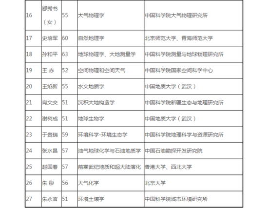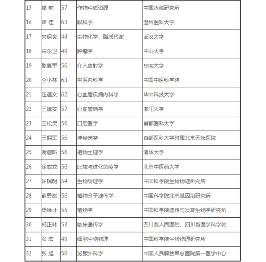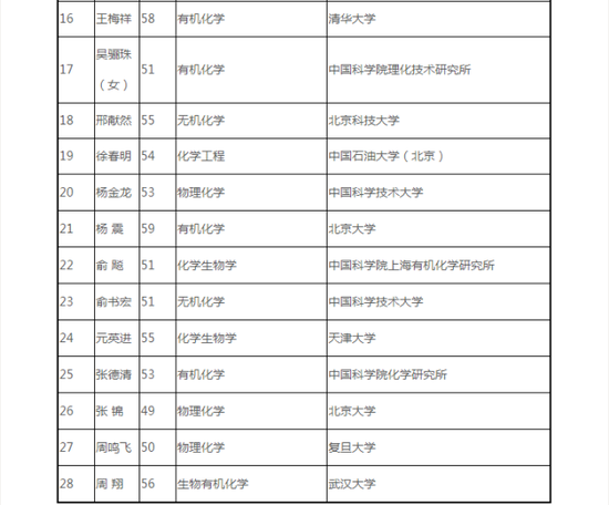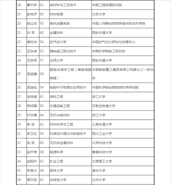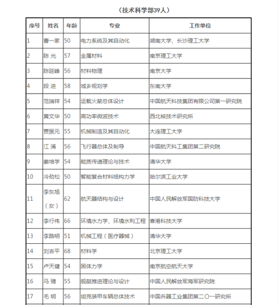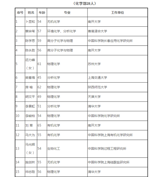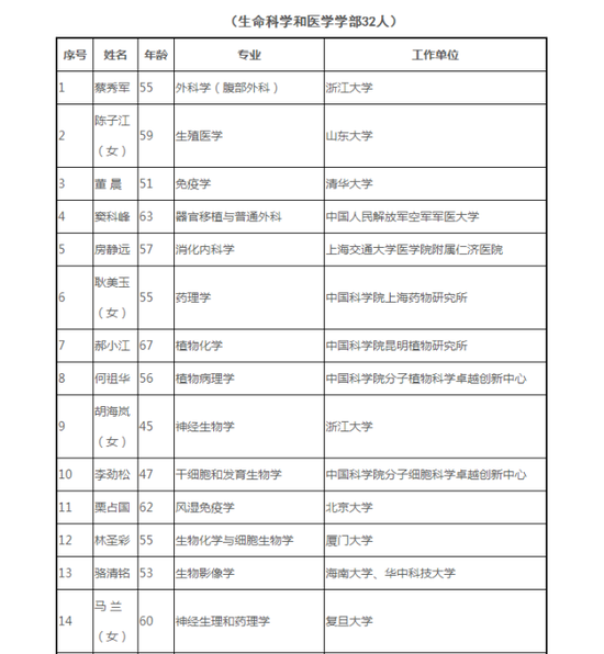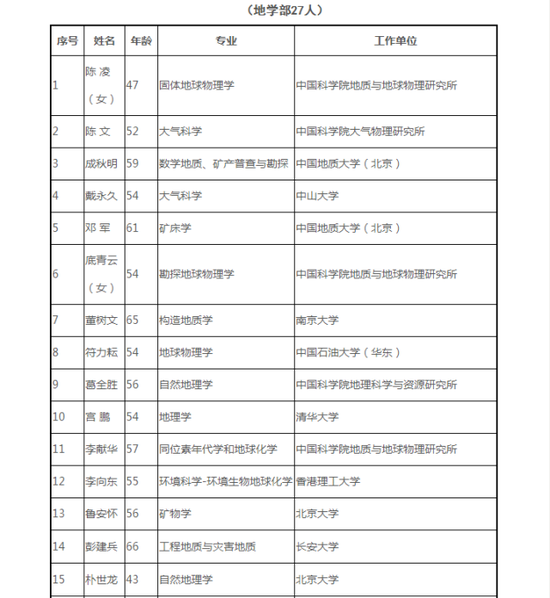 鏈接 2019年中國科學院院士增選初步候選人名單
