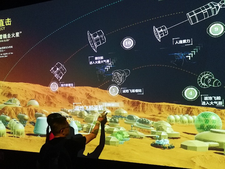 馮中介紹說(shuō),展廳里有一個(gè)展項(xiàng)專門介紹如何利用現(xiàn)有技術(shù)完成載人火星登陸。“其實(shí),以目前人類的科技水平,是有可能把宇航員送上火星的,但為什么遲遲沒(méi)有行動(dòng)?是缺少什么,還是等待什么?這也是我們留給觀眾思考的一個(gè)問(wèn)題。”