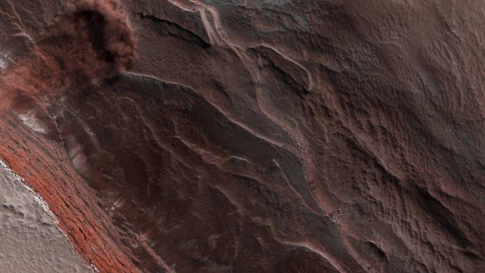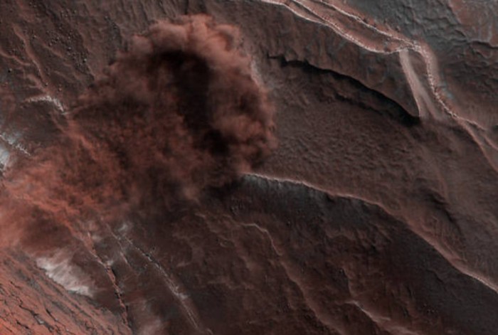 這并不是美國宇航局第一次在紅色星球上捕獲雪崩,但這次塵土飛揚(yáng)的圖像是最清晰的一次。