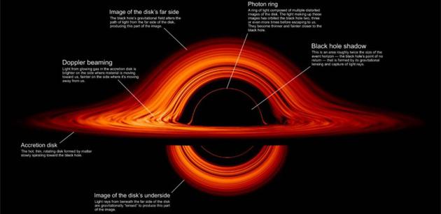 據(jù)NASA稱,盤上似乎勾勒出黑洞的部分實際上是環(huán)的底面。這也是由于黑洞的引力引起的極端彎曲。從任何角度觀看時,外觀看起來都是相同的。