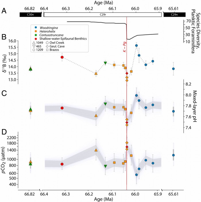 這項研究周一發(fā)表在《美國國家科學院院刊》上,研究了Geulhemmerberg洞穴,德克薩斯州的布拉索斯河,深海鉆探巖心和密西西比州的Owl Creek,描繪了小行星撞擊的直接后果。研究小組認為,在小行星撞擊地球之前,海洋的酸度并未增加。