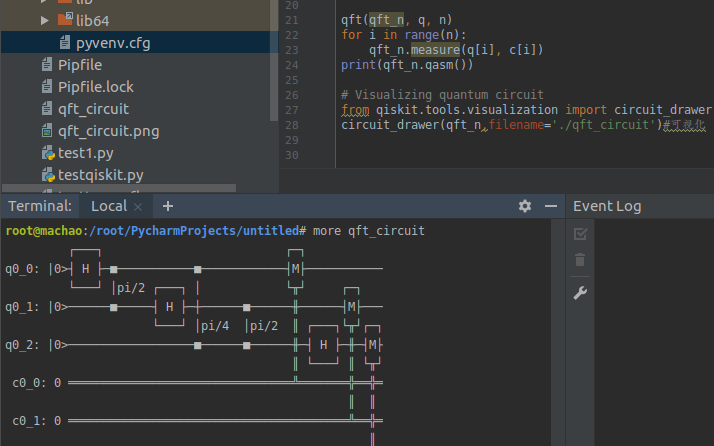 然后打開(kāi)在你運(yùn)行以上代碼的目錄打開(kāi)qft_circuit文件就能看到咱們剛剛定義的量子電路了,具體效果如下: