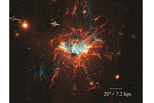 這份研究提供的圖片上可以看到,這些較“年輕”的球狀星團(tuán)與復(fù)雜細(xì)絲網(wǎng)狀結(jié)構(gòu)的冷氣體有著密切的聯(lián)系。研究人員由此推斷這些星團(tuán)是在延伸到巨型星系外圍的冷氣體中誕生。