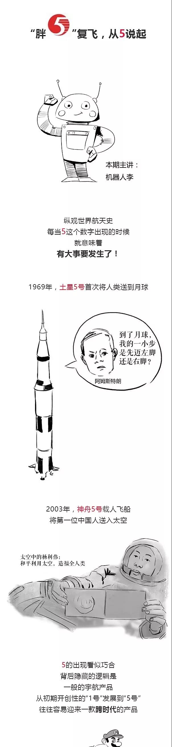 數(shù)字5的出現(xiàn)看似巧合,背后隱藏的邏輯是,一般的宇航產(chǎn)品從初期開創(chuàng)性的“1號(hào)”發(fā)展到“5號(hào)”,往往容易迎來一款跨時(shí)代的產(chǎn)品。