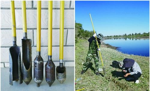 該團隊根據(jù)新疆塔里木盆地野外水文地質(zhì)調(diào)查工作實際需求,先后研制了多種型號的洛陽鏟隨鏟取水裝置,并在孔雀河流域進行了大量的應(yīng)用試驗,取得了良好的效果,已被廣泛推廣應(yīng)用于沙漠區(qū)水位與水質(zhì)調(diào)查、孔雀河淡化帶調(diào)查等專項工作中。