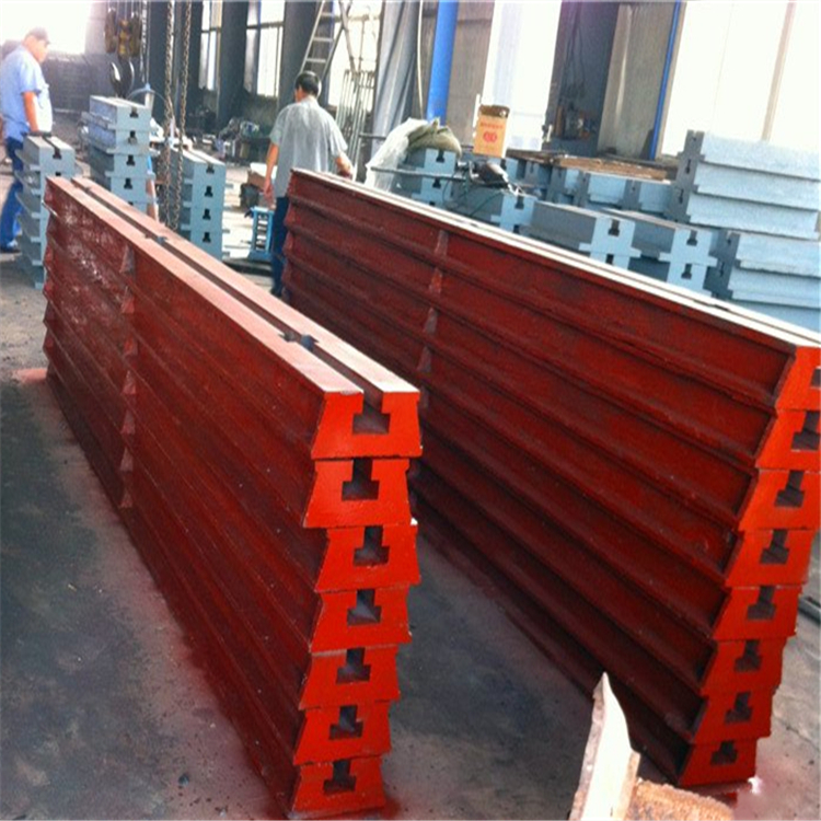 鑄鐵地軌通常叫做,鑄鐵地軌,T型槽鑄鐵地軌,地槽鐵,基礎(chǔ)曹鐵,地梁,鑄鐵地梁,條形平板,條形平臺(tái)。遇到體積巨大的機(jī)械設(shè)備可以把幾個(gè)或更多的鑄鐵地軌拼接起來(lái), 做為承載平臺(tái)使用。鑄鐵地軌是工業(yè)中不可缺少的重要設(shè)備。