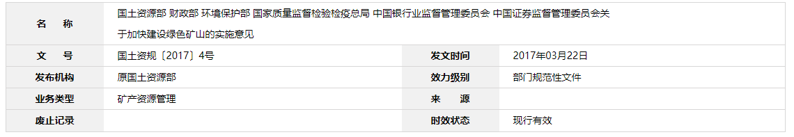 國(guó)土資源部 財(cái)政部 環(huán)境保護(hù)部 國(guó)家質(zhì)量監(jiān)督檢驗(yàn)檢疫總局 中國(guó)銀行業(yè)監(jiān)督管理委員會(huì) 中國(guó)證券監(jiān)督管理委員會(huì)