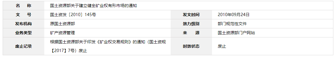 | 國土資源部關(guān)于建立健全礦業(yè)權(quán)有形市場的通知 |