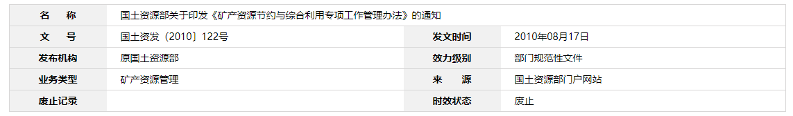 | 國土資源部關(guān)于印發(fā)《礦產(chǎn)資源節(jié)約與綜合利用專項(xiàng)工作管理辦法》的通知 |