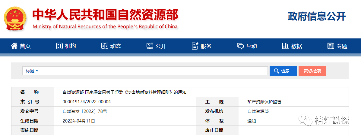第六條 涉及工作秘密的地質(zhì)資料的確定和解除,依據(jù)自然資源部有關(guān)規(guī)定進(jìn)行。