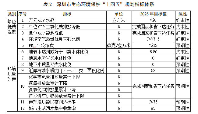 到2025年,生態(tài)環(huán)境質(zhì)量達(dá)到國(guó)際先進(jìn)水平,形成低消耗、少排放、能循環(huán)、可持續(xù)的綠色低碳發(fā)展方式,以先行示范標(biāo)準(zhǔn)推動(dòng)碳達(dá)峰邁出堅(jiān)實(shí)步伐,大氣、水、近岸海域等環(huán)境質(zhì)量持續(xù)提升,城市生態(tài)系統(tǒng)服務(wù)功能增強(qiáng),基本建立完善的現(xiàn)代環(huán)境治理體系,天更藍(lán)、地更綠、水更清、城市更美麗。生態(tài)環(huán)境保護(hù)主要目標(biāo):