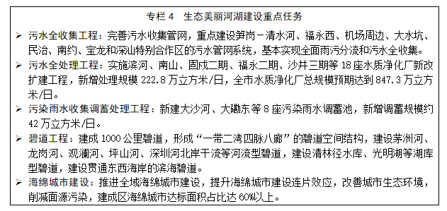 ——生態(tài)環(huán)境質(zhì)量持續(xù)提升。大氣環(huán)境質(zhì)量持續(xù)改善,PM2.5年均濃度低于18微克/立方米,主要河流水質(zhì)達(dá)到地表水Ⅳ類以上,固體廢棄物得到全面有效處置,景觀、游憩等親水需求得到滿足,美麗海灣建設(shè)走在全國(guó)前列。