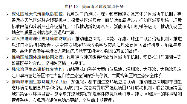 以建設(shè)美麗灣區(qū)為引領(lǐng),加強(qiáng)深港澳更緊密務(wù)實(shí)合作,融入和帶動(dòng)“一核一帶一區(qū)”建設(shè),健全區(qū)域生態(tài)環(huán)境保護(hù)合作機(jī)制,加快推進(jìn)綠色“一帶一路”建設(shè),積極參與生態(tài)環(huán)境保護(hù)國(guó)際合作,為推進(jìn)全球環(huán)境治理貢獻(xiàn)深圳力量。