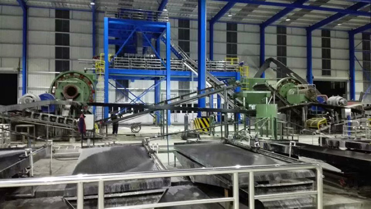 球磨機(jī)電機(jī)通過減速裝置驅(qū)動筒體工作,然后使我們的物料送進(jìn)筒體,經(jīng)過鋼球拋動然后借助于離心力的關(guān)系,便產(chǎn)生拋落和瀉落,礦石在沖擊和研磨作用下逐步被粉碎。另外被粉碎的礦石經(jīng)排料部分排出筒外,排出的礦物在螺旋分級機(jī)中經(jīng)分級出合格產(chǎn)品后,粗砂通過聯(lián)合進(jìn)料器再回到球磨機(jī)內(nèi)繼續(xù)粉磨。
