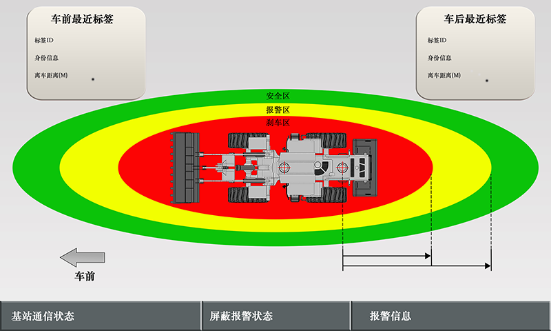 5 防碰撞系統(tǒng)分為:安全區(qū)、預(yù)警區(qū)、剎車區(qū),根據(jù)所在區(qū)域不同進行三級預(yù)警(監(jiān)測區(qū)域范圍可定制)。